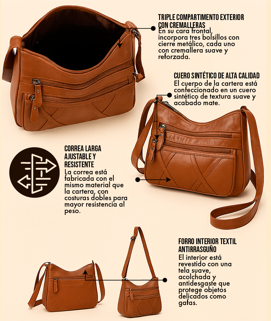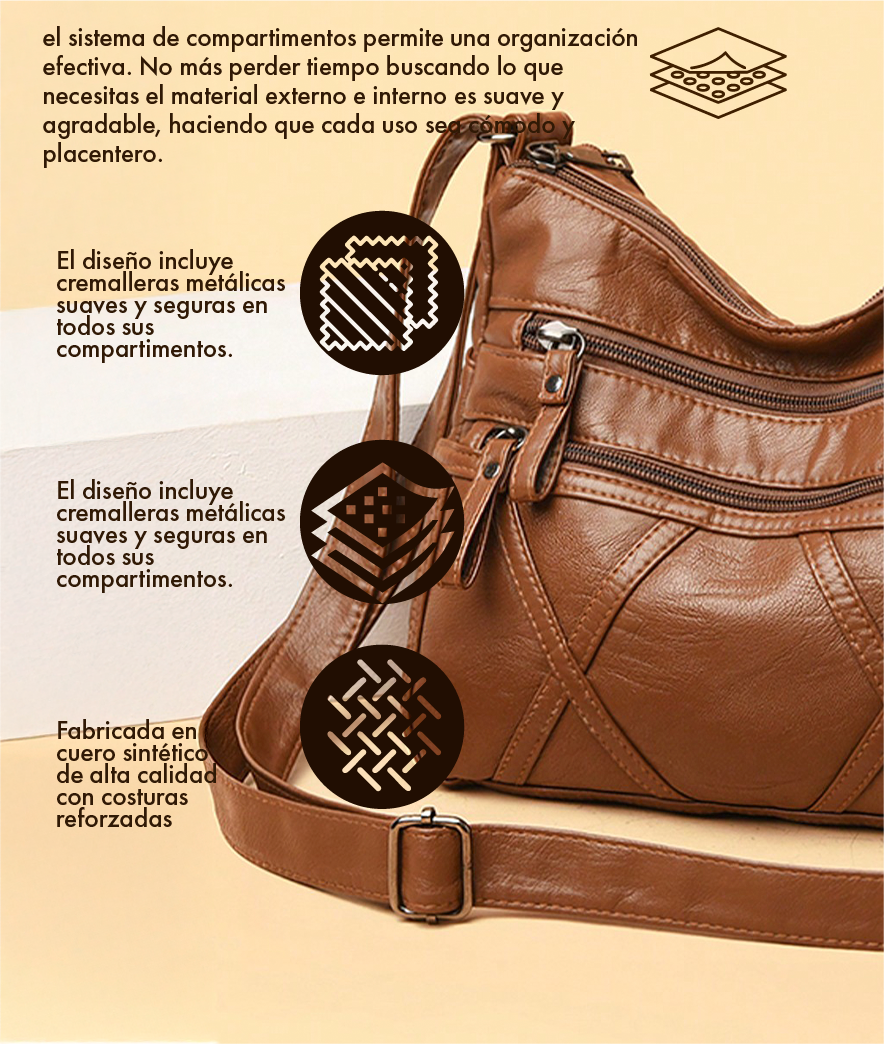 Los bolsos deben ser más que simples recipientes; deben ser una extensión de tu vida organizada. Este bolso te ofrece la paz mental de la seguridad y el orgullo de lucir un accesorio elegante. Es la promesa de un día a día más fluido, sin estrés ni preocupaciones.