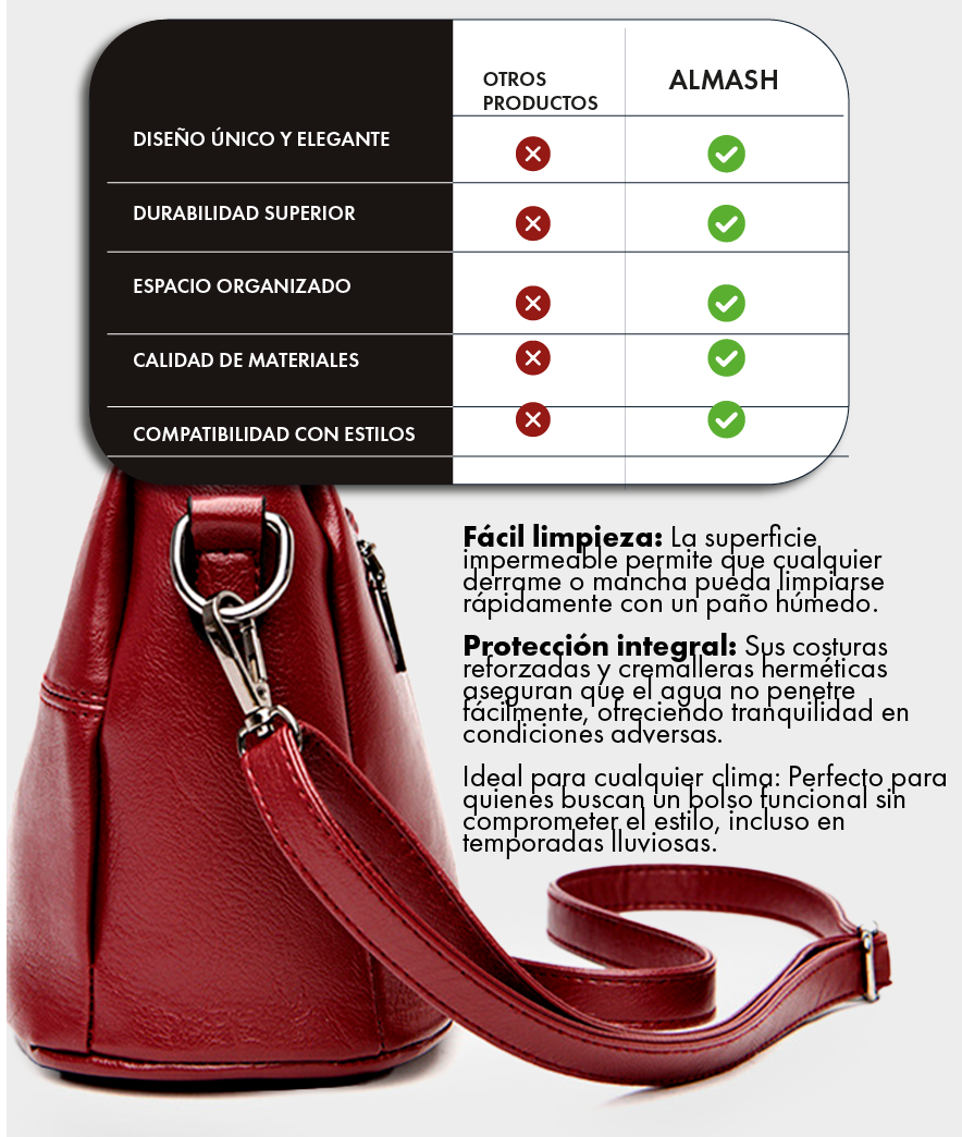 La desilusión de un bolso que se descascara o rompe es real. Con nuestro Bolso de Cuero Genuino, esa preocupación se disuelve. Su durabilidad y calidad te aseguran un accesorio impecable en todo momento.