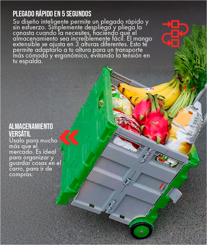 El mercado no tiene que ser un castigo. Con nuestro carrito, la compra se convierte en un paseo ligero y sin esfuerzo, liberándote de la fatiga y el dolor de cargar bolsas.