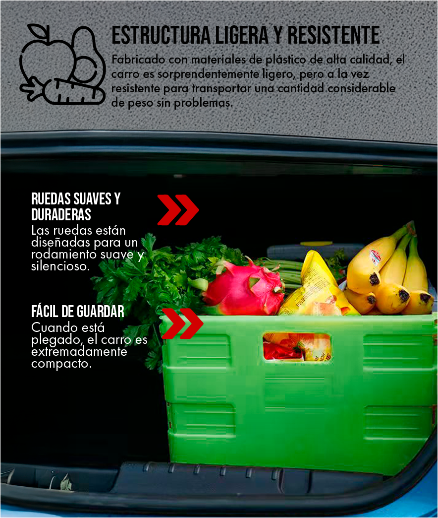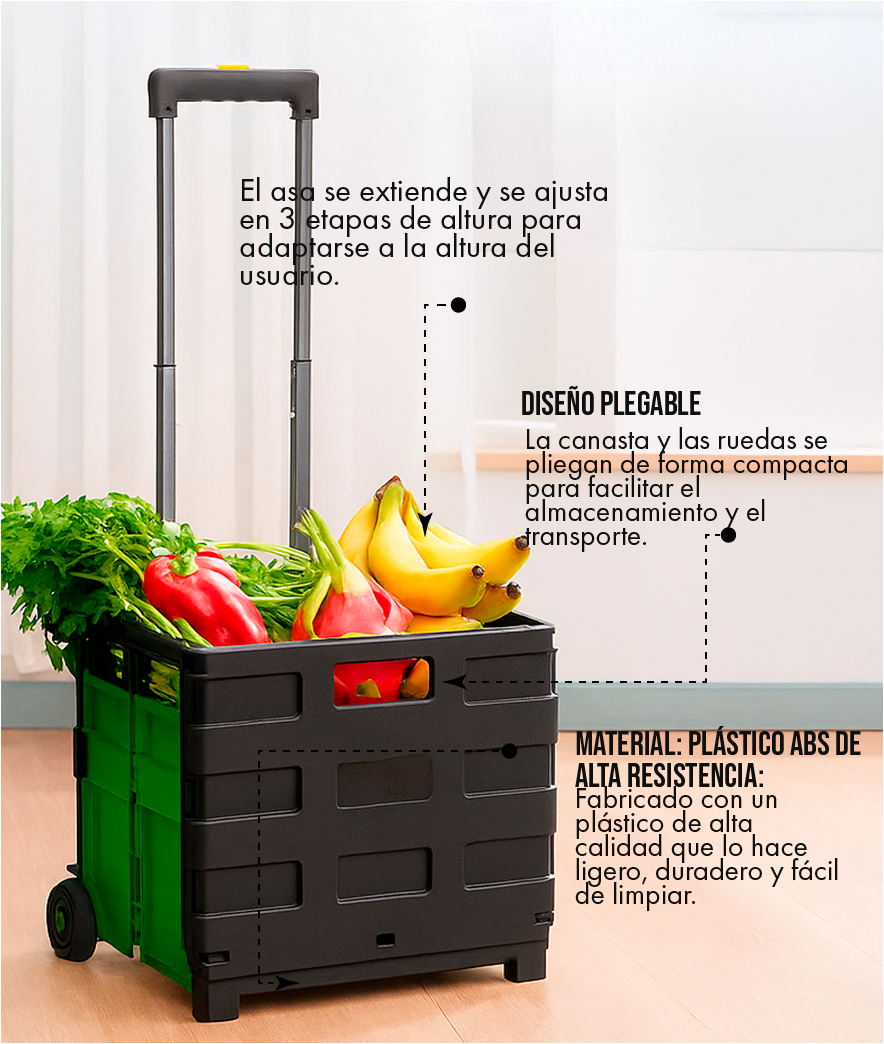 El desorden visual de objetos que no tienen un lugar puede ser abrumador. Nuestro carrito no solo te ayuda a transportar cosas, sino que también funciona como un organizador para tu hogar y tu carro.