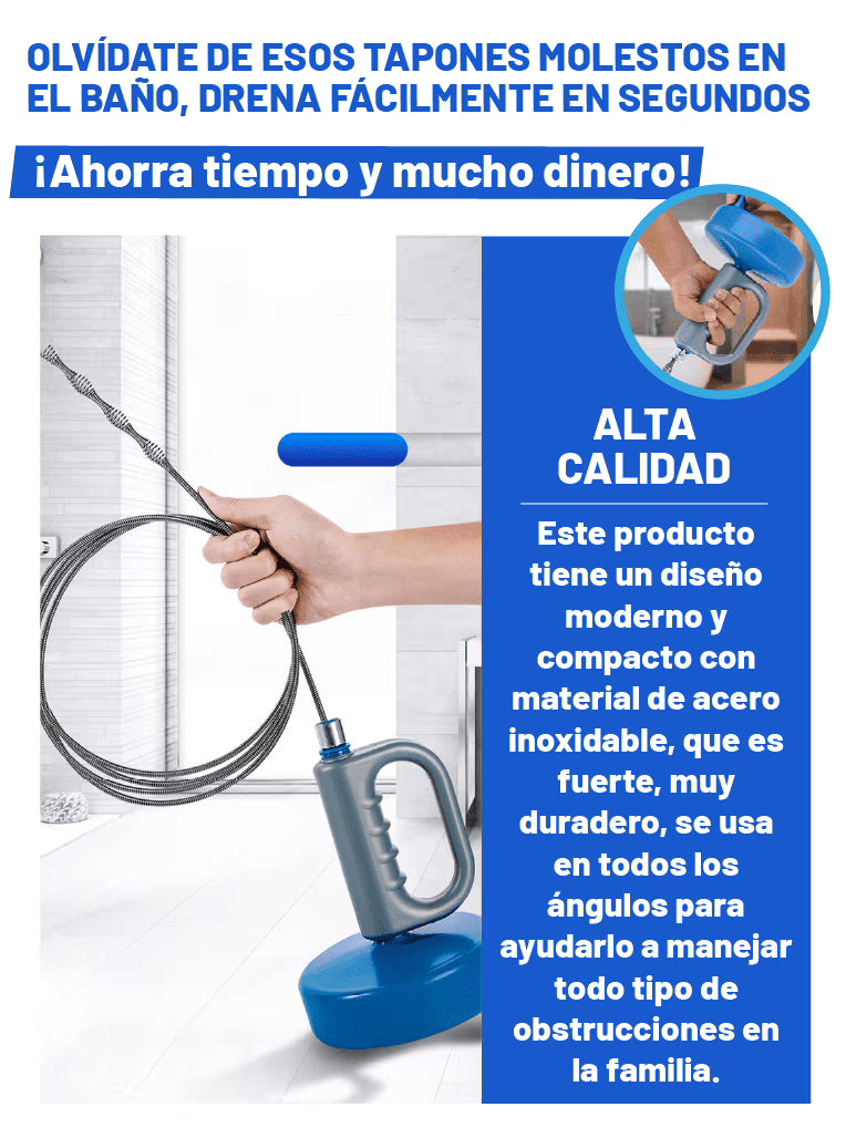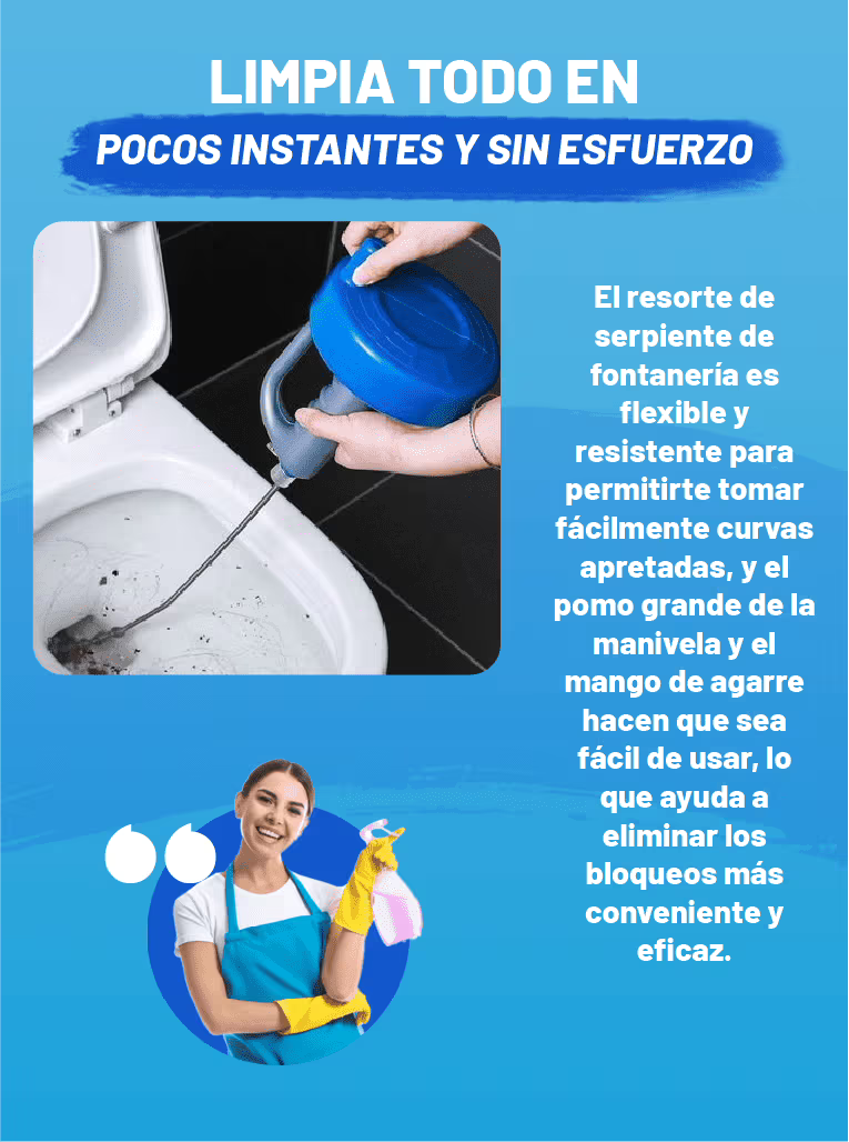 No necesitas ser un experto para solucionar este problema. Con el PlumClean, tendrás la confianza y la herramienta para desatascar cualquier tubería, sintiéndote como un plomero profesional, pero sin el costo.