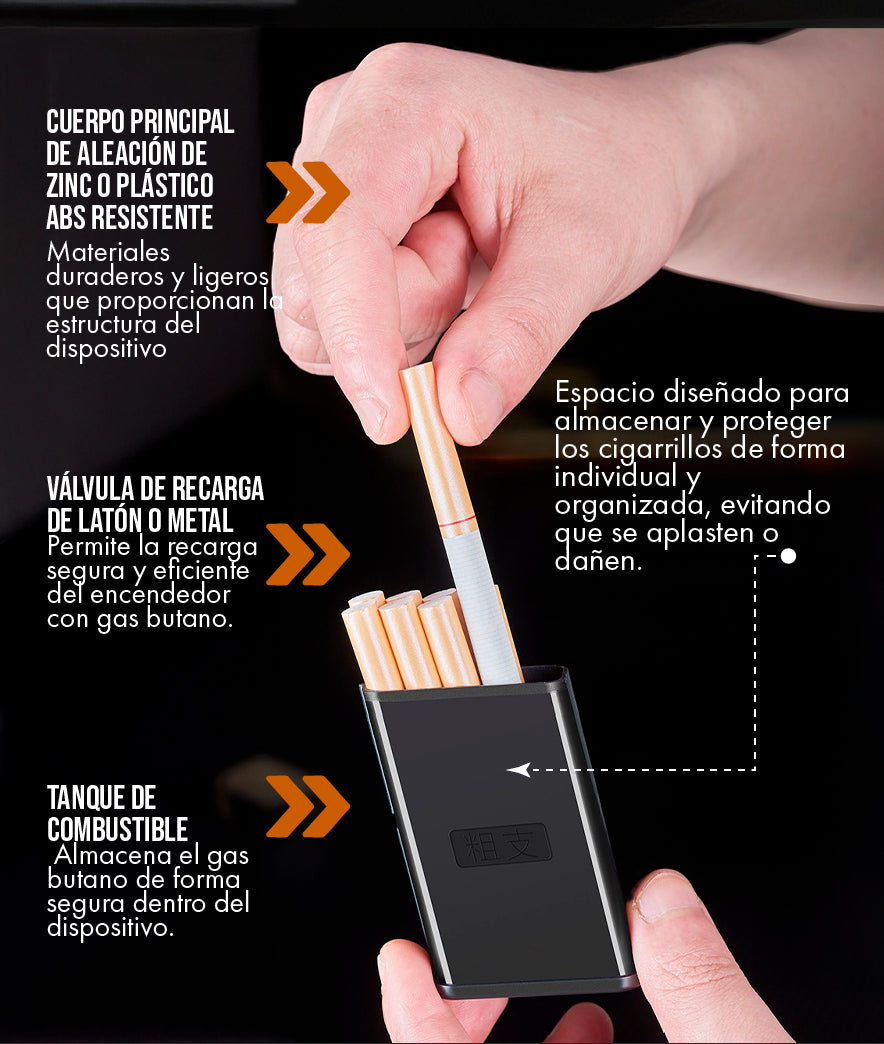 La mayoría de los accesorios son una cosa o la otra. O son bonitos o son prácticos. El Estuche Encendedor Porta Cigarrillos Fire-Pro rompe ese molde. Su diseño elegante y minimalista lo hace una declaración de estilo, mientras que su funcionalidad 2-en-1 lo convierte en una herramienta indispensable. Es la combinación perfecta para la persona moderna que valora tanto la forma como la función.