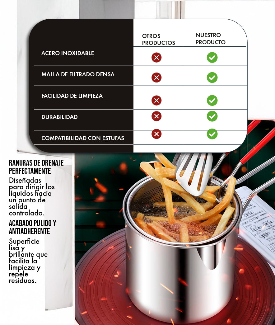 No más coladores inestables o cestas difíciles de limpiar. Esta freidora es el utensilio que faltaba en tu arsenal de cocina para hacer que tus preparaciones fritas sean rápidas, fáciles y perfectas.