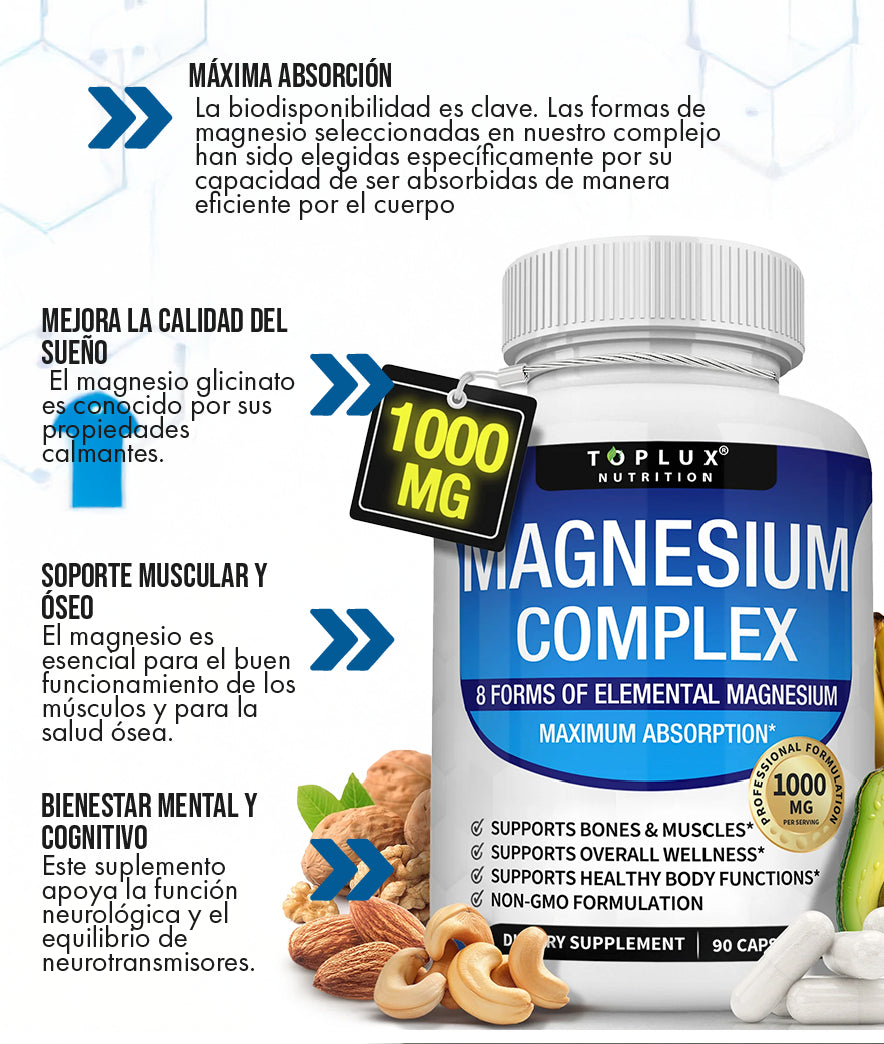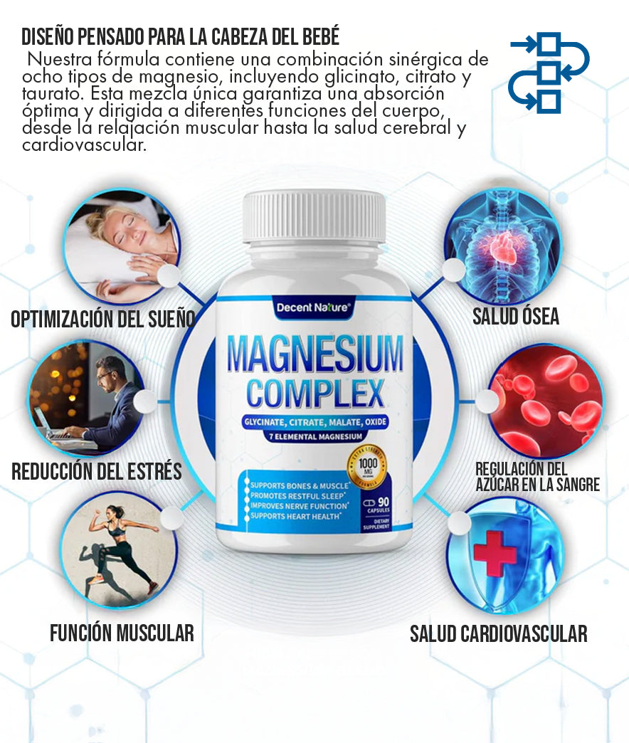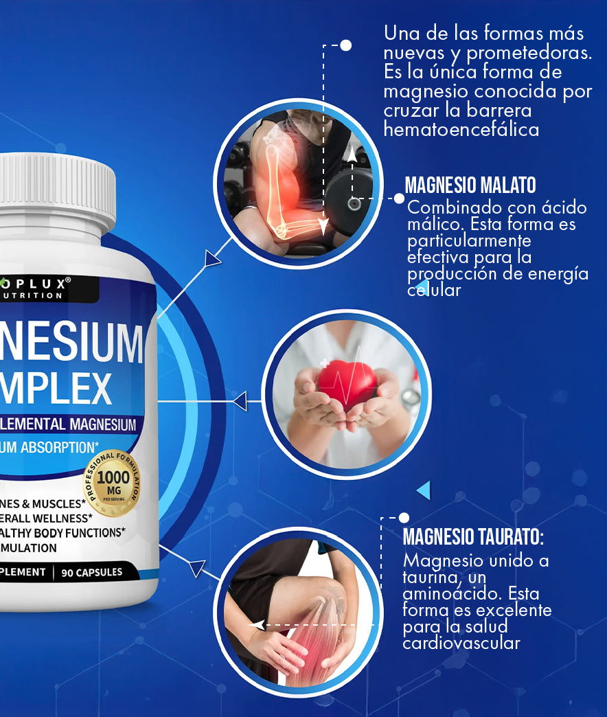 Un buen descanso es la clave para un día exitoso. Nuestro Magnesium Complex te ayuda a calmar tu mente y cuerpo, preparando el terreno para un sueño profundo y reparador. Imagina la sensación de despertar sintiéndote realmente descansado, listo para enfrentar cualquier desafío.