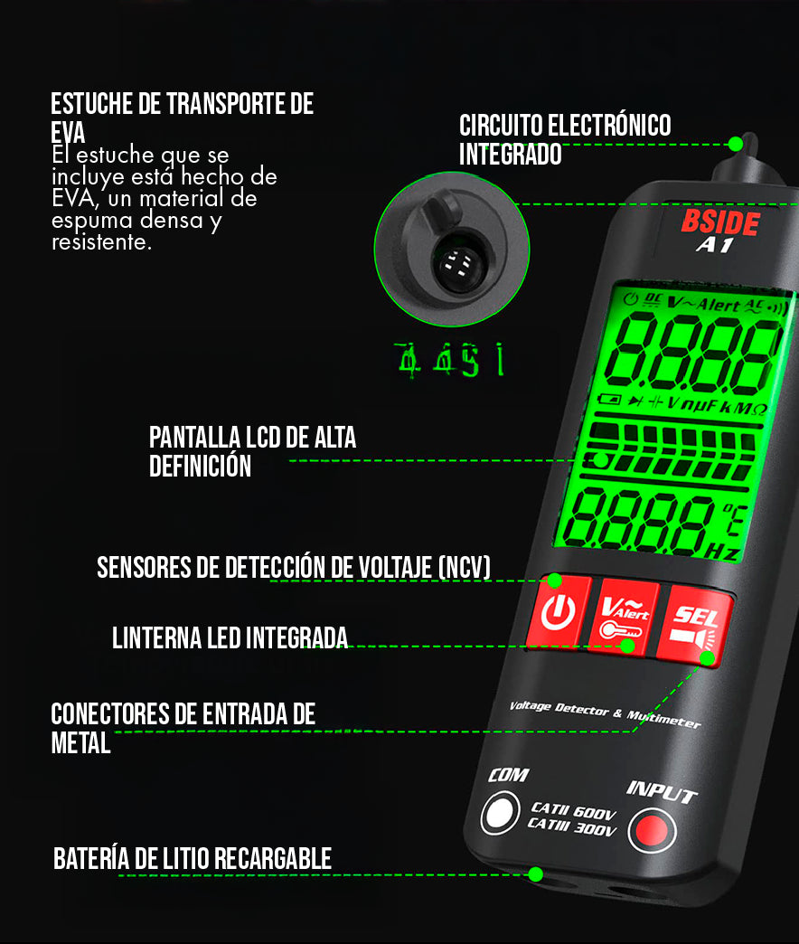 Detector de voltaje sin contacto, protección de sobrecarga. |