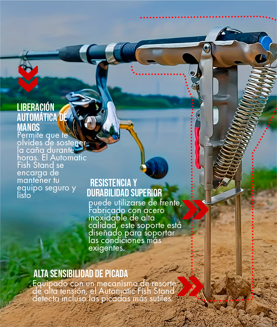 disfruta de la pesca sin agotamiento. el soporte automático se encarga de mantener tu caña firme mientras tú te concentras en preparar carnadas, conversar o simplemente contemplar el paisaje. esta libertad transforma cada jornada en un momento relajante y productivo.