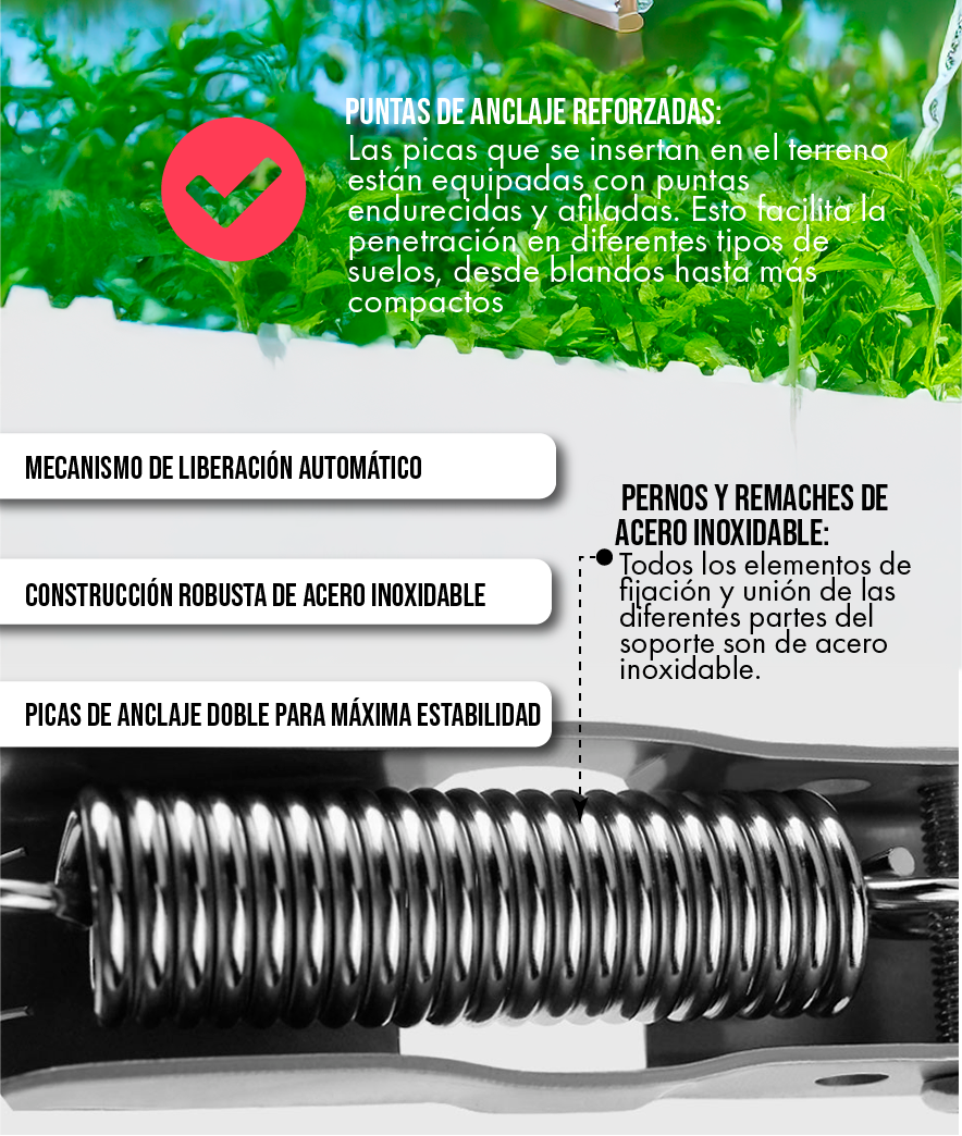 este soporte de acero inoxidable protege tu inversión con firmeza y estabilidad. evita caídas bruscas, golpes accidentales y movimientos peligrosos que pueden dañar tu caña o carrete. invierte en seguridad y prolonga la vida útil de tu equipo.