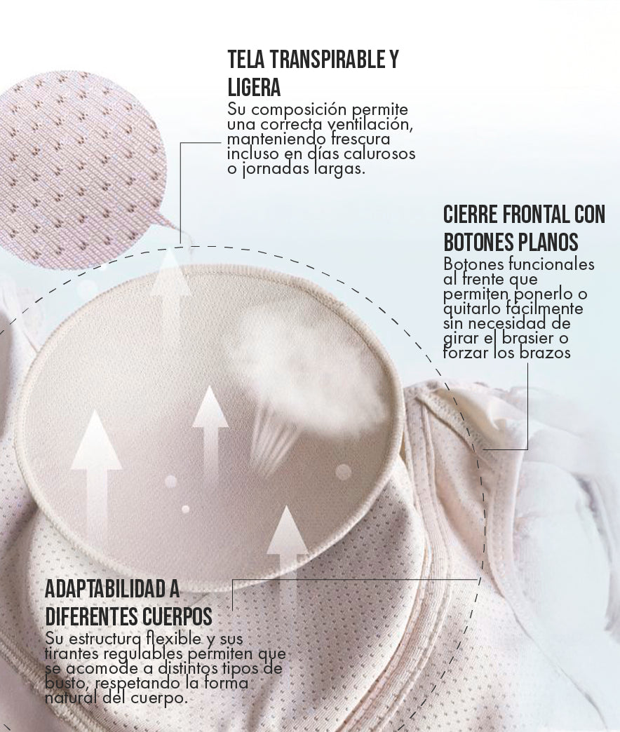 La comodidad no es un lujo, es una necesidad. Vivir con la incomodidad de un sostén con varillas que te aprieta afecta tu bienestar. Nuestra tela súper elástica y sin costuras te da un ajuste perfecto y suave que se siente como una segunda piel.
